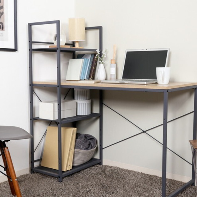 ラック付き4WAYデスク 幅100cm テーブル 机 木製 収納 テレワーク PCデスク おしゃれ