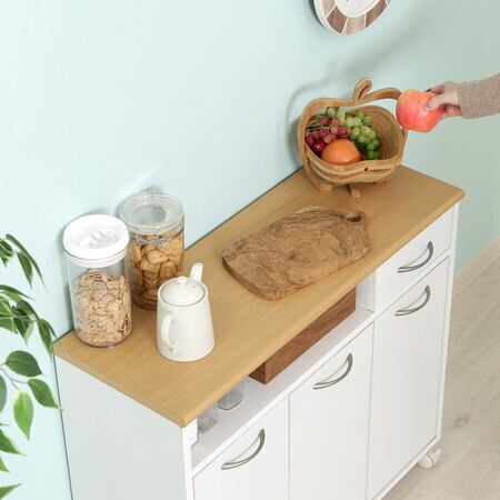 収納スペースは、キッチン用品や食器を整理整頓するのに最適です。さらに、台上には調理器具やスパイスを置けるので、作業効率が向上します。