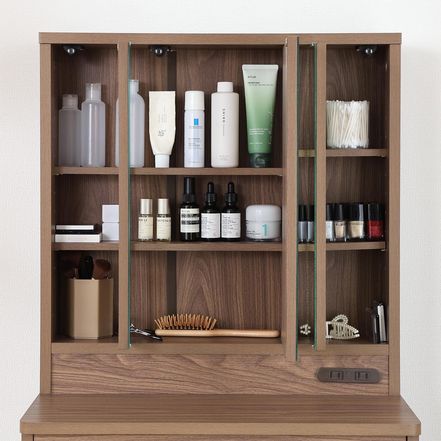 鏡部分が扉になっており中は収納スペースになっています。
