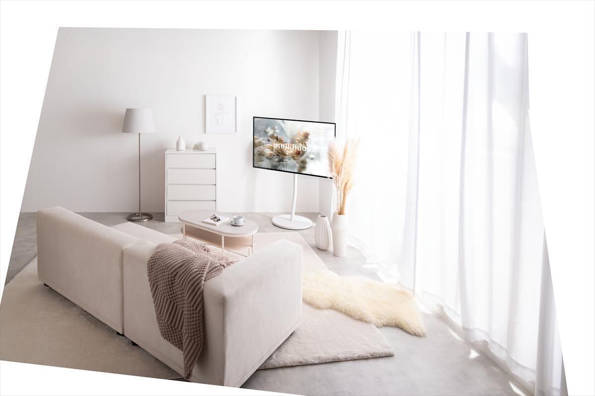 白いボディと丸い足元がかわいらしい『Lize(リゼ)』キャスター付きテレビスタンド