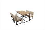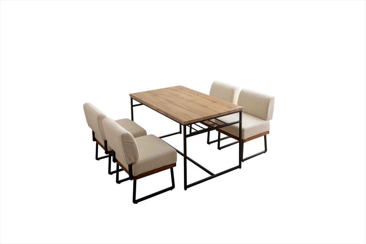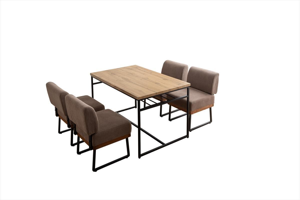 【5点セット】Claes 幅120cm 棚付きダイニングテーブル+1人掛けソファ4脚