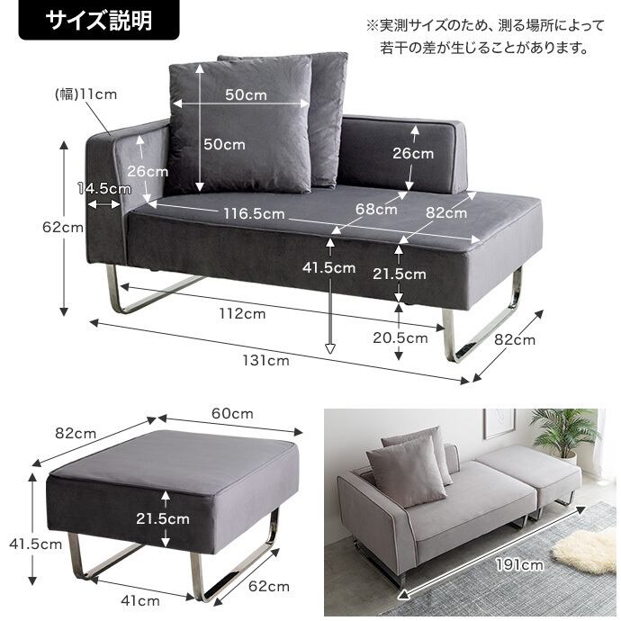 【ソファ】幅131cm×奥行82cm×高さ62cm(座面高:41.5cm)