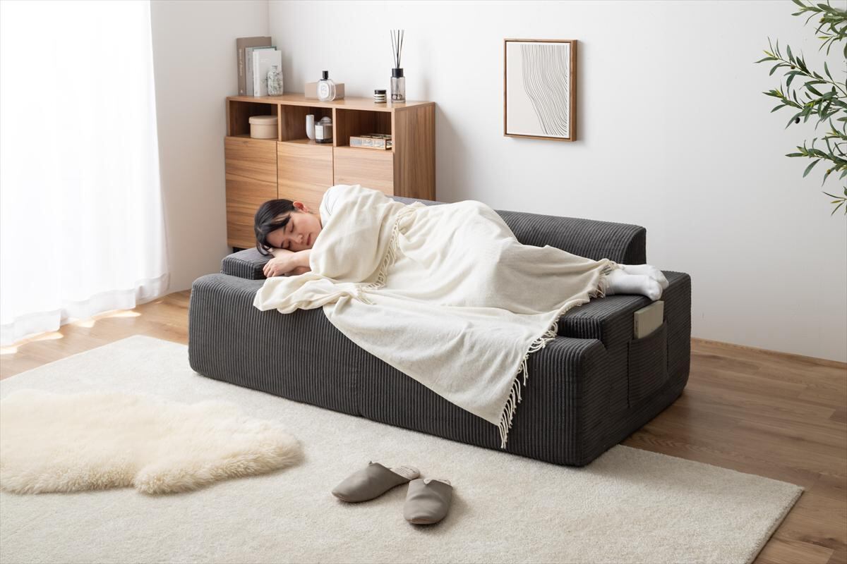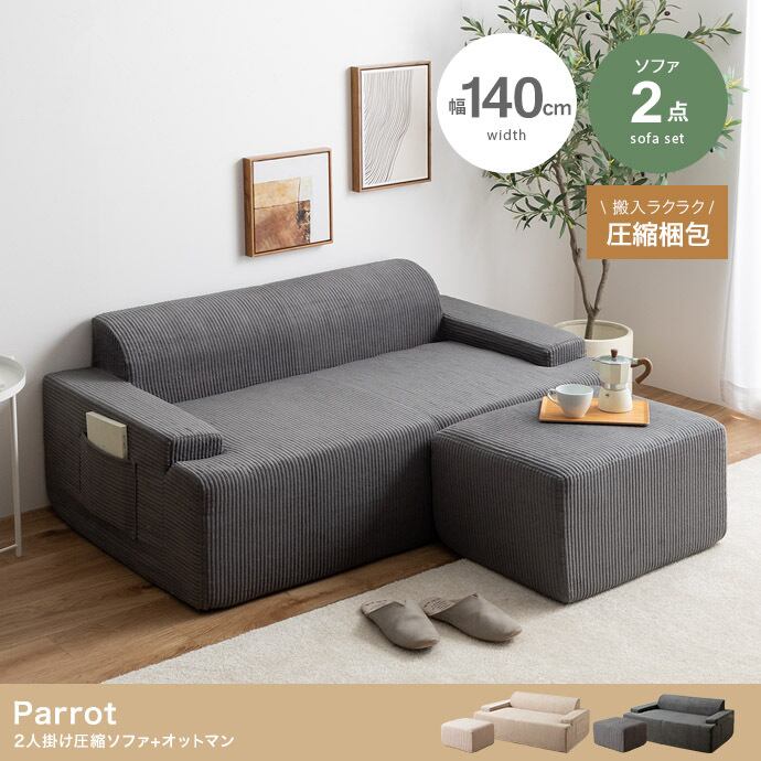 小さく届いて広々使える、快適圧縮シリーズの2人掛けソファ+オットマンセット