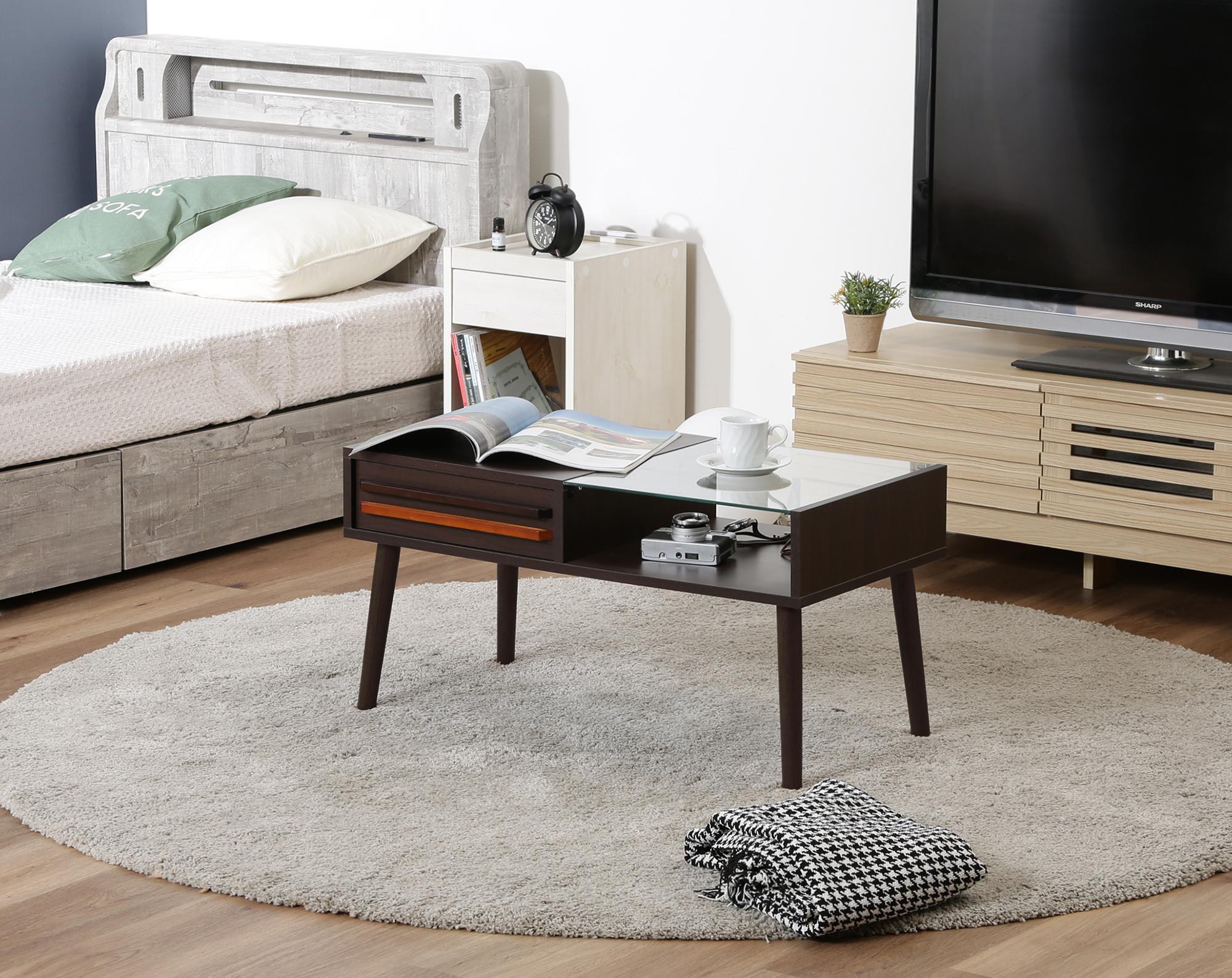 ガラス天板側は雑誌やちょっとした小物雑貨などをディスプレイすることができます。