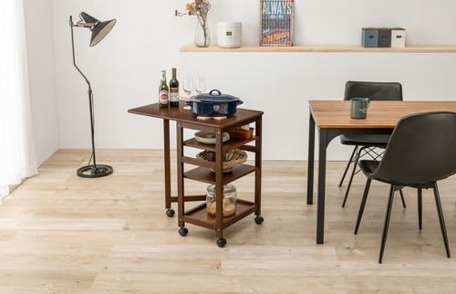 天板を広げれば作業台に早変わりする便利ワゴン。