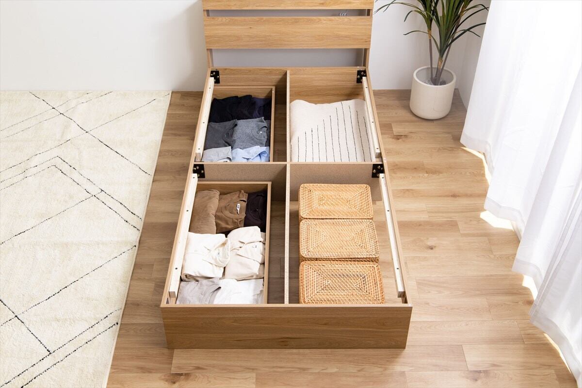 ◯ 【セミダブル】Pluto 収納付きベッド(マットレス付き)