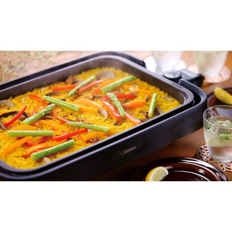 落ちた脂が流れやすい傾斜溝つき焼肉プレート。2枚のプレートで料理の幅が広がります。・深型プレート/レパートリーが広がる深さ3.5cm。・耐久性が高い「遠赤トリプルチタンセラミックコート」。・傾斜溝つき焼肉プレート/プレートの溝が傾斜していて落ちた脂が流れやすいのでヘルシーに焼けます。・プレートのふちに直接手が触れにくい「本体ガード」。・プレートをセットしなければ通電しない安全機構。・最高温度(蓋なし)/250℃・本体ガードとプレートは取り外して丸洗いできます。