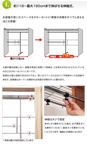 ●お部屋のスペース、衣類の収納量に合わせて、最大約190cmまで伸縮可能なハンガー。
