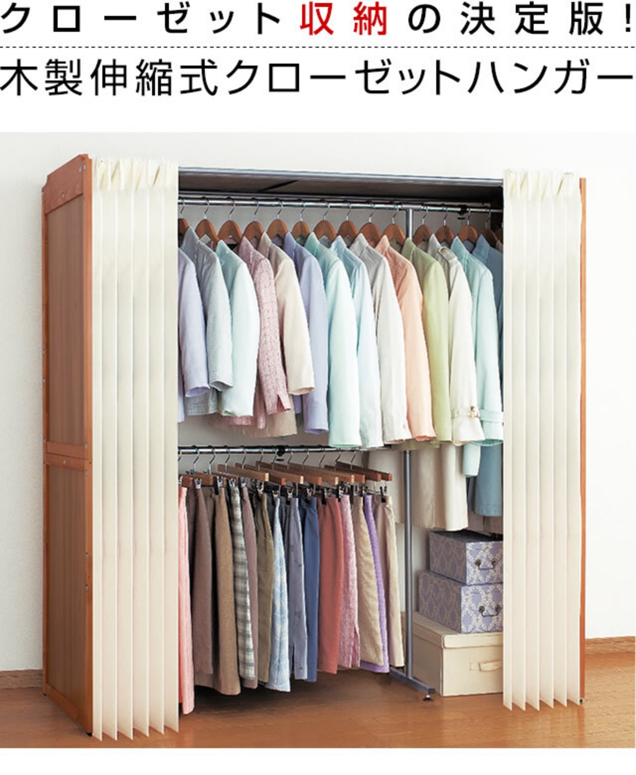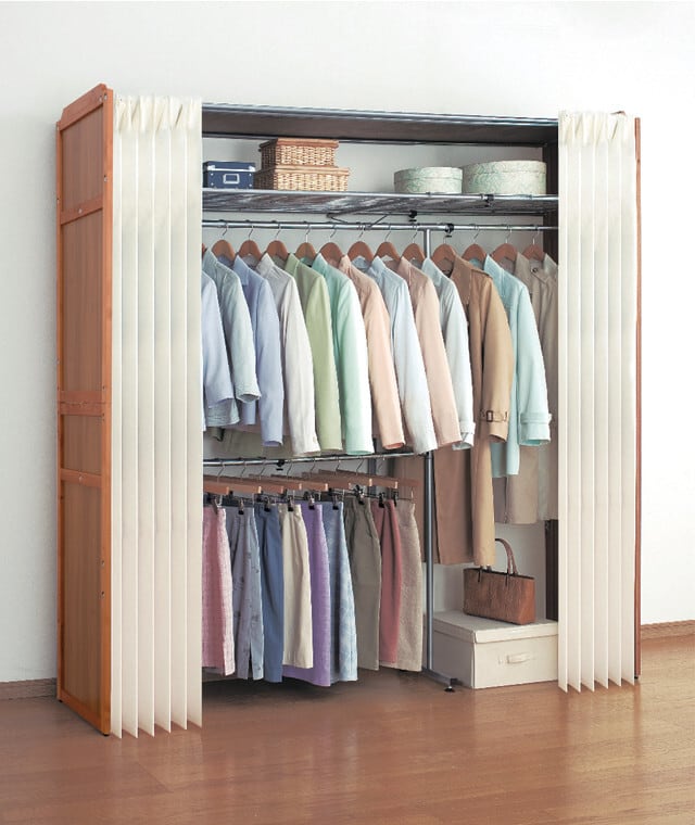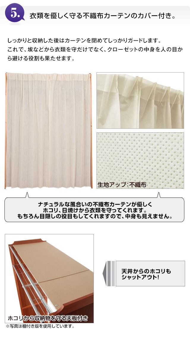 ●カーテン付きなので衣類をホコリから守り、中身も見えません。
