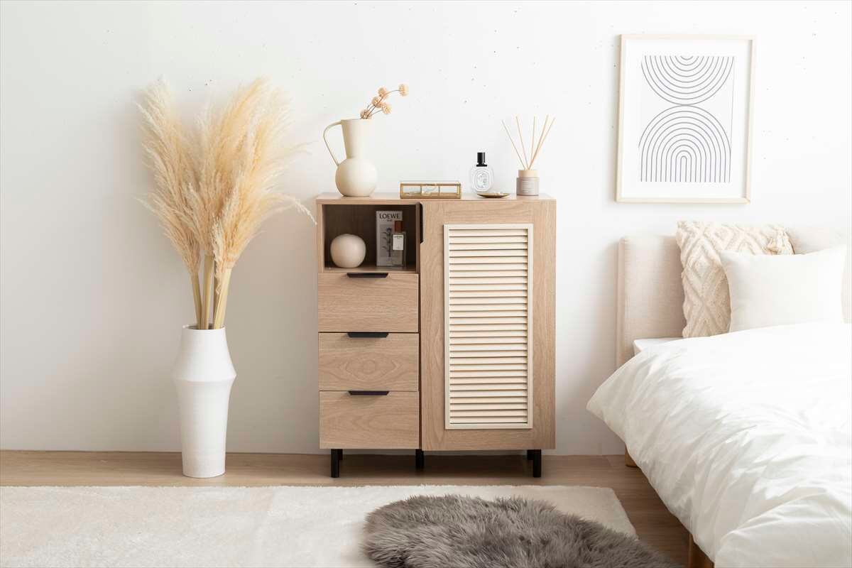 ナチュラルな木目にルーバーデザインをさりげなくあしらった『Coffea(コフェア)』シリーズのキャビネット