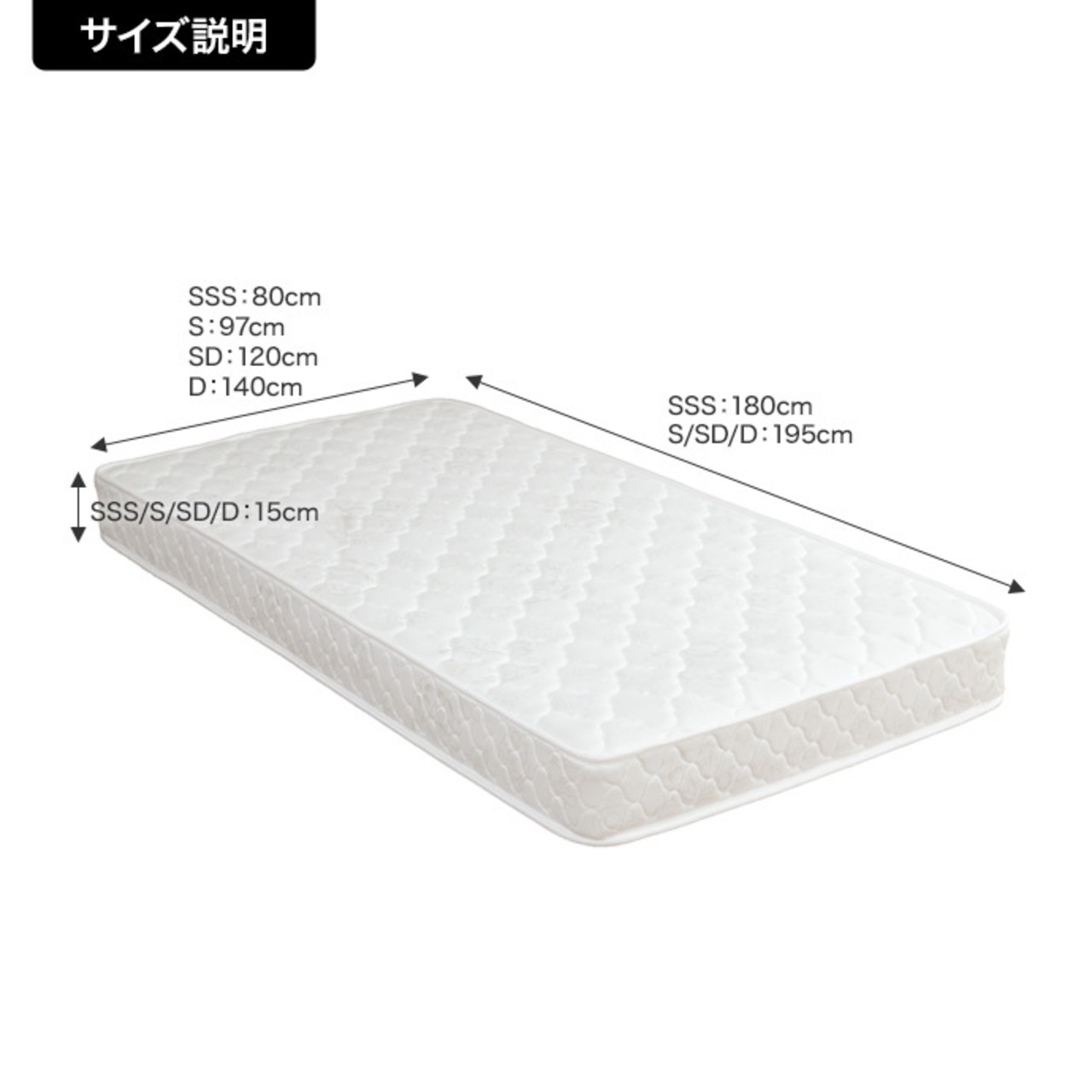 【ボンネルコイルマットレス】幅120cm×長さ195cm×高さ15cm(コイル数:264)