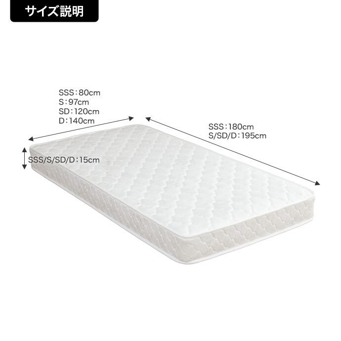 ※マットレスとフレーム枠のサイズについては、誤差が出る場合がございます。予めご了承下さいませ。