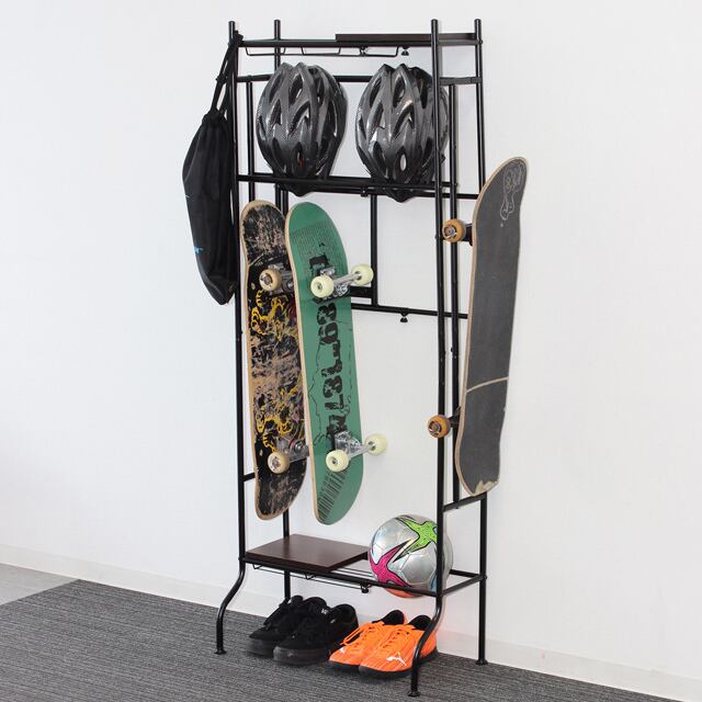 ◆さまざまなスポーツ用品の他に、玄関収納としてもお使いいただけます。自転車用ヘルメットやお子様の外遊び道具など、お部屋に持ち込みたくない物の収納に便利です