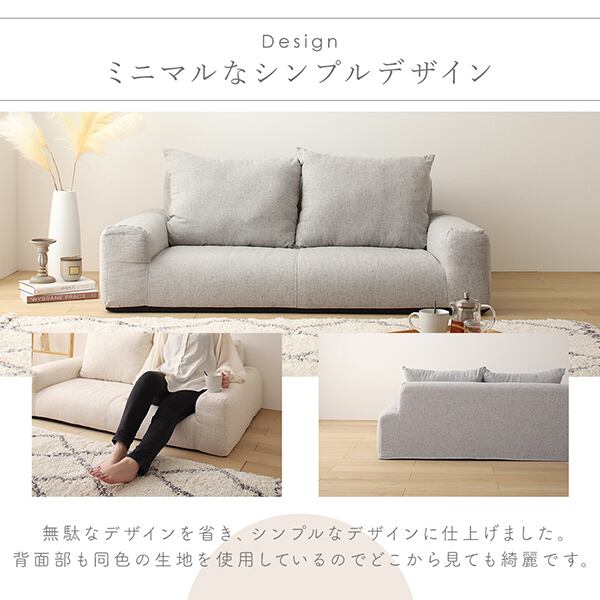 背もたれは自由に取り外しができる独立タイプ。枕代わりにしたり、広く座りたい時は外したりとくつろぎの幅が広がります。