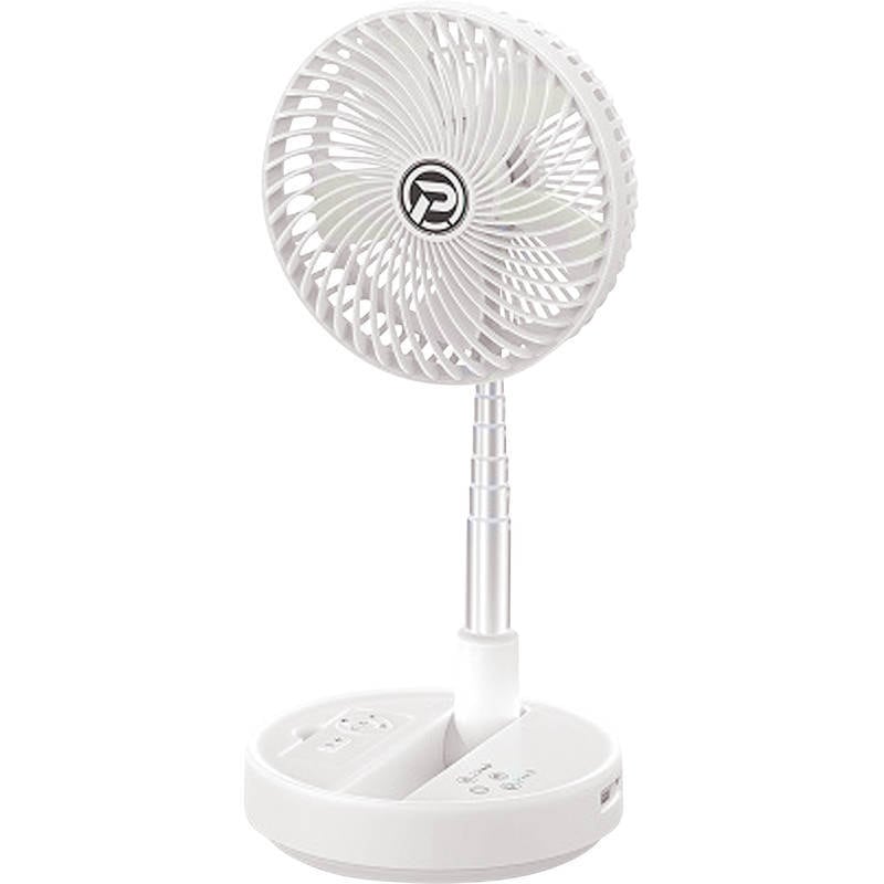 変幻自在! 卓上でも床上でも大活躍!・収納時の高さはわずか11.5cm。驚きのコンパクト収納!・上下可動域は180度。高さは無段階調整。・風量は4段階調整。 ・左右首振り/120°・DCモーター採用で、パワフルながら滑らかな風を実現・外部出力可能なので、非常時にはスマホなどの充電も可能。・タイマー ・10,000mAh(連続稼働時間:約5.5-16時間)・USB充電式 ・充電時間/約6~8時間 ・PSE取得品