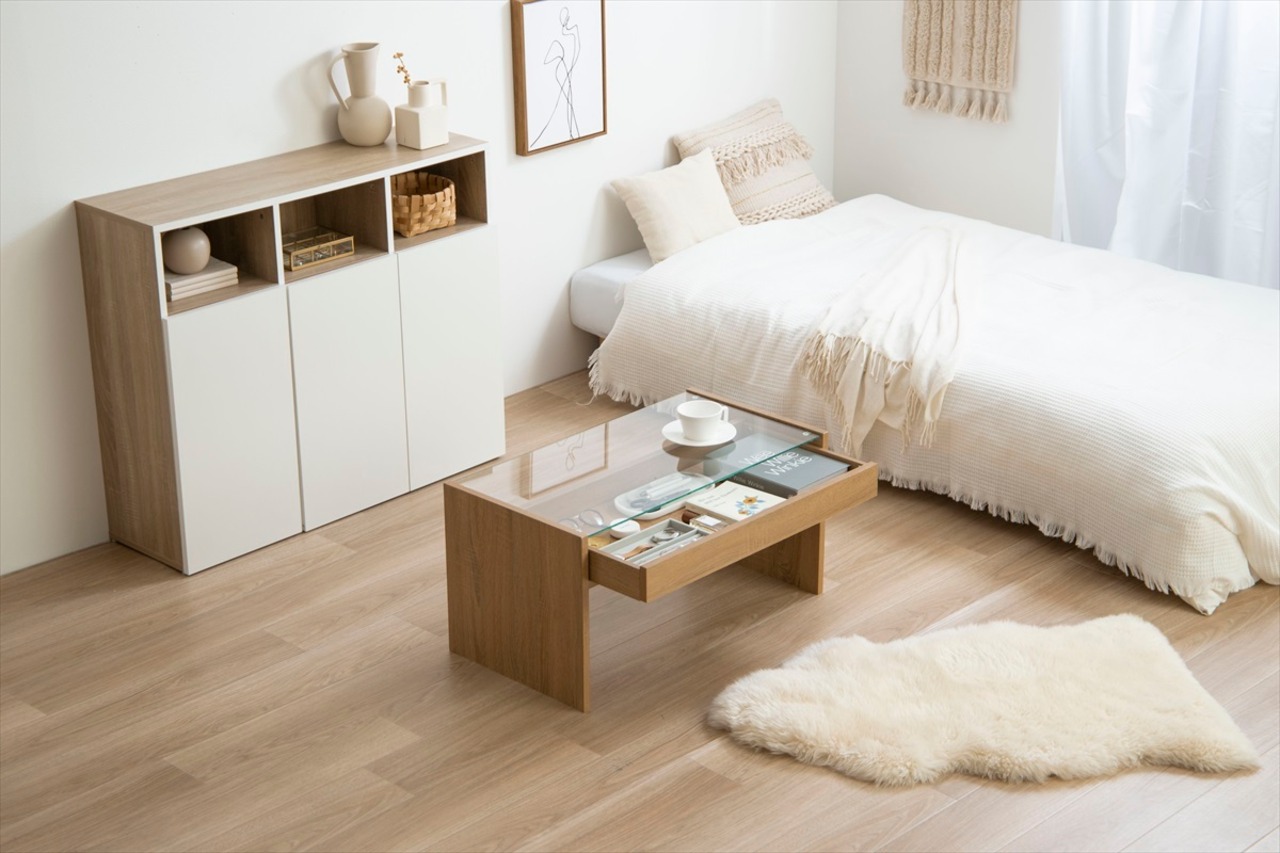シンプルさとモダンさを兼ね揃えた、『Lana(ラナ)』シリーズのガラス天板センターテーブル